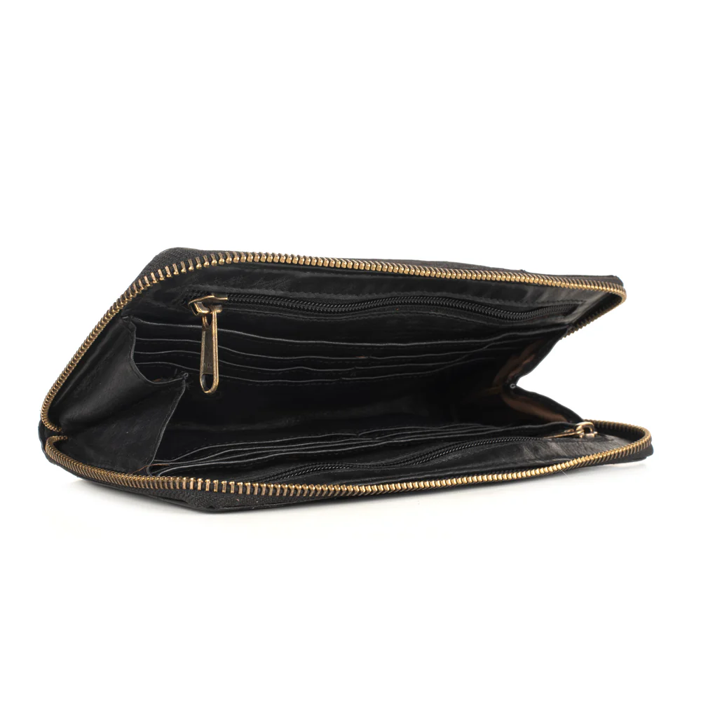 This wallet will fit your cell phone. A sturdy and robust wallet that immediately draws attention. Handmade in washed cowhide, with beautiful WOVEN hand-stitch detailing.