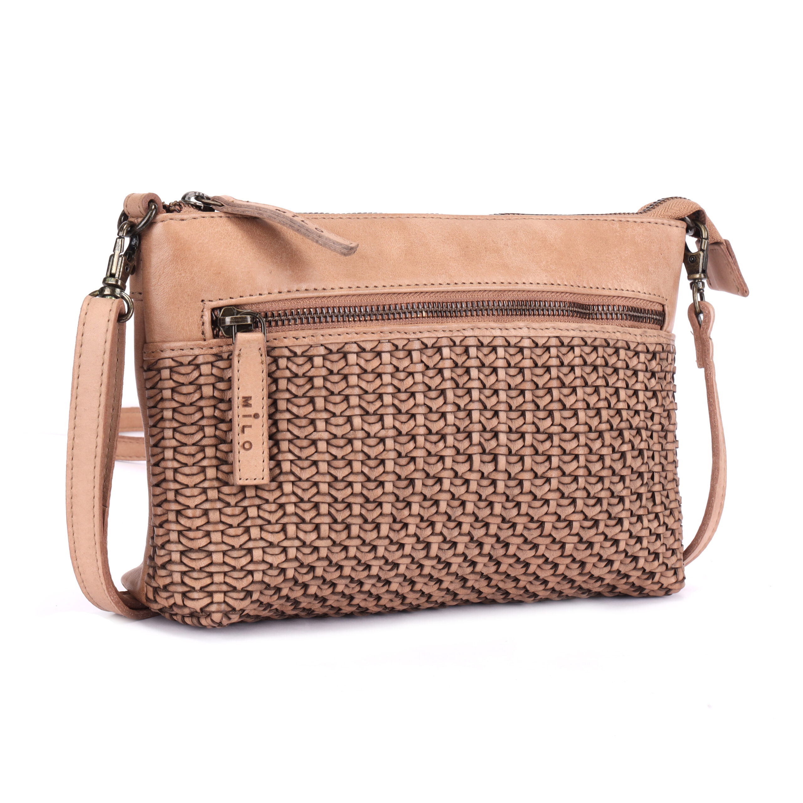 Finally, a small handbag that also has enough room for all the essentials! With two outside zippered pockets and a well-organized interior compartment, nothing gets lost in this attractive woven leather handbag. The adjustable crossbody strap ensures comfort while wearing.