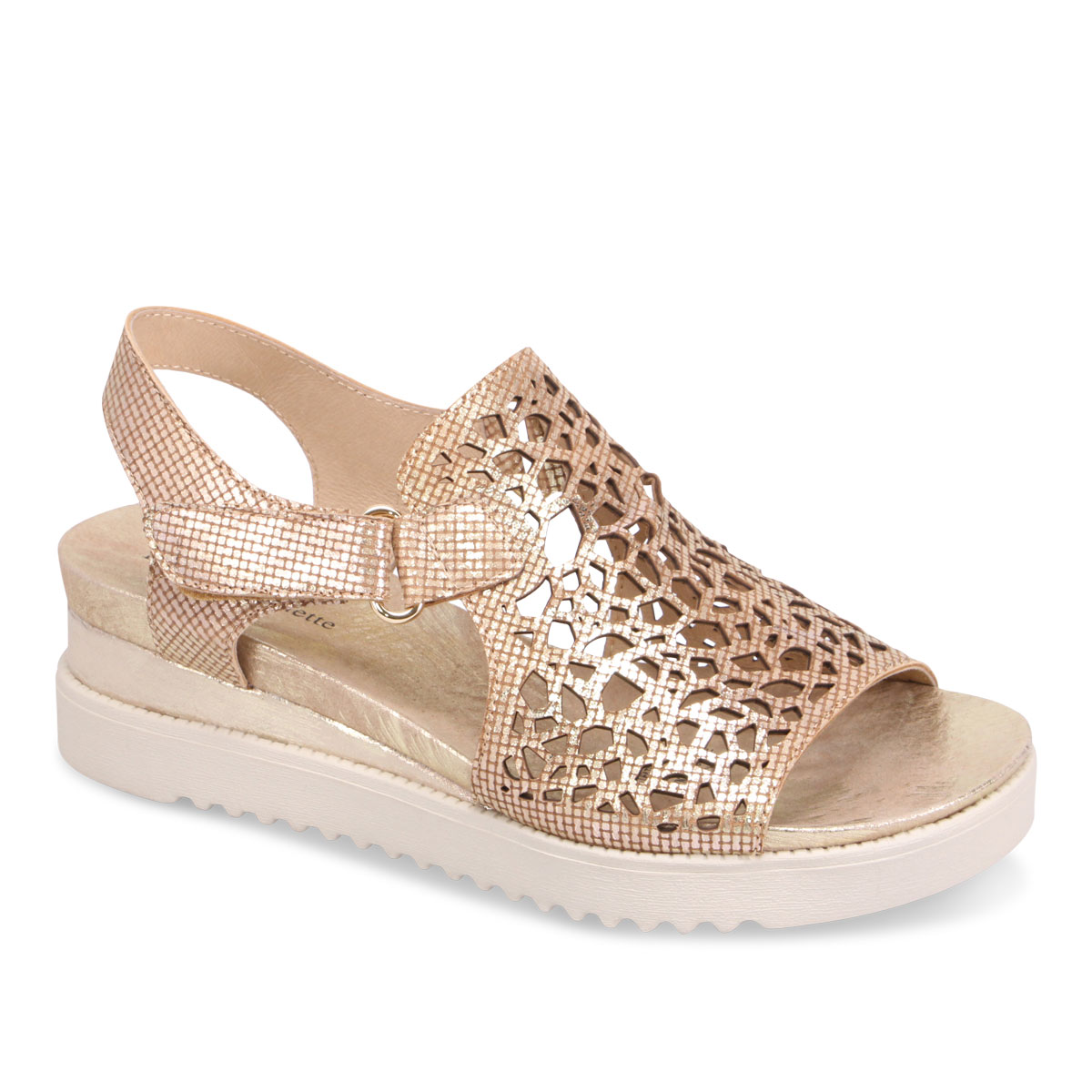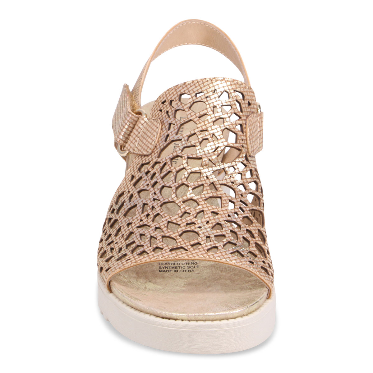 • Sturdy 2.25″ mixed material wedge paired with a  1″ platform at the forefoot