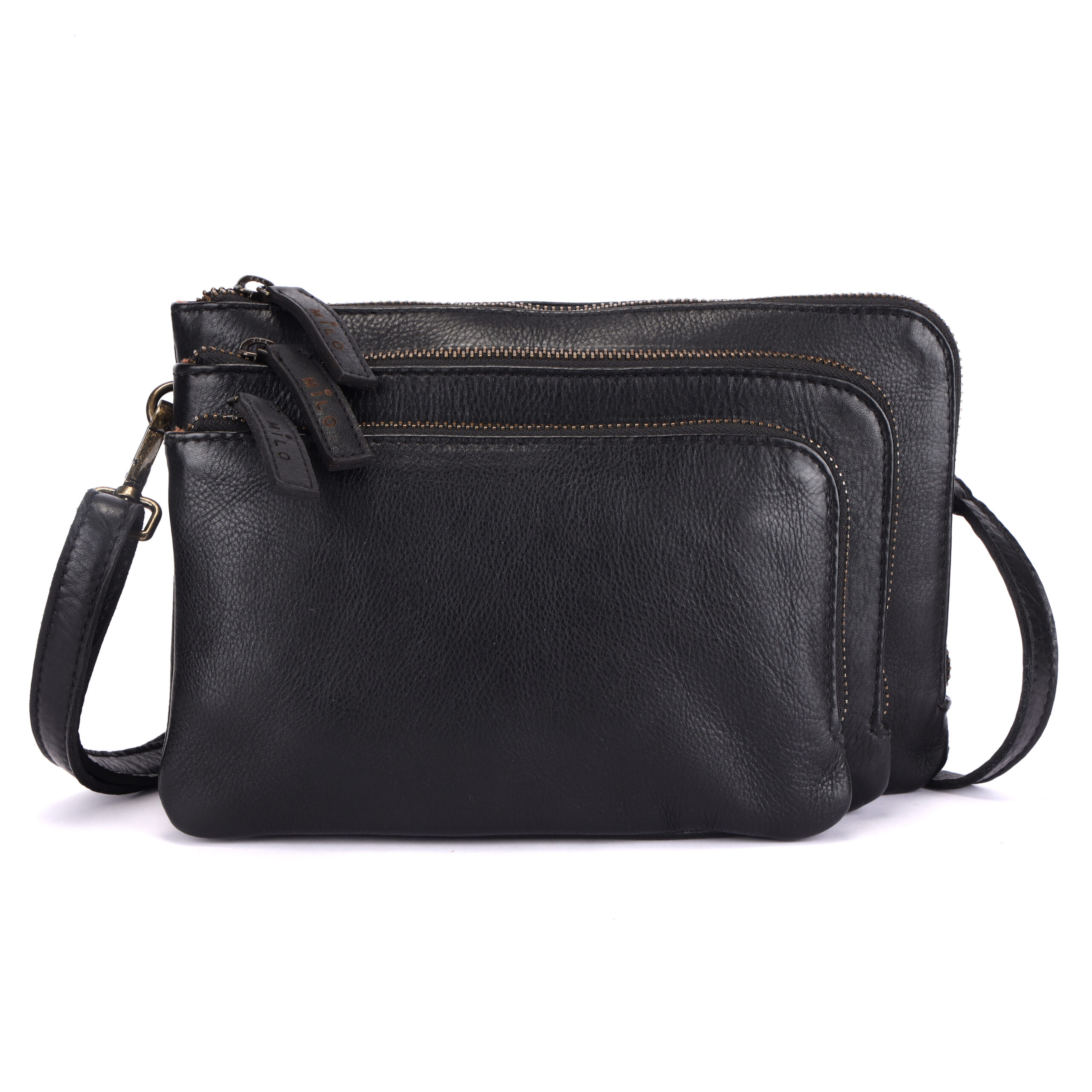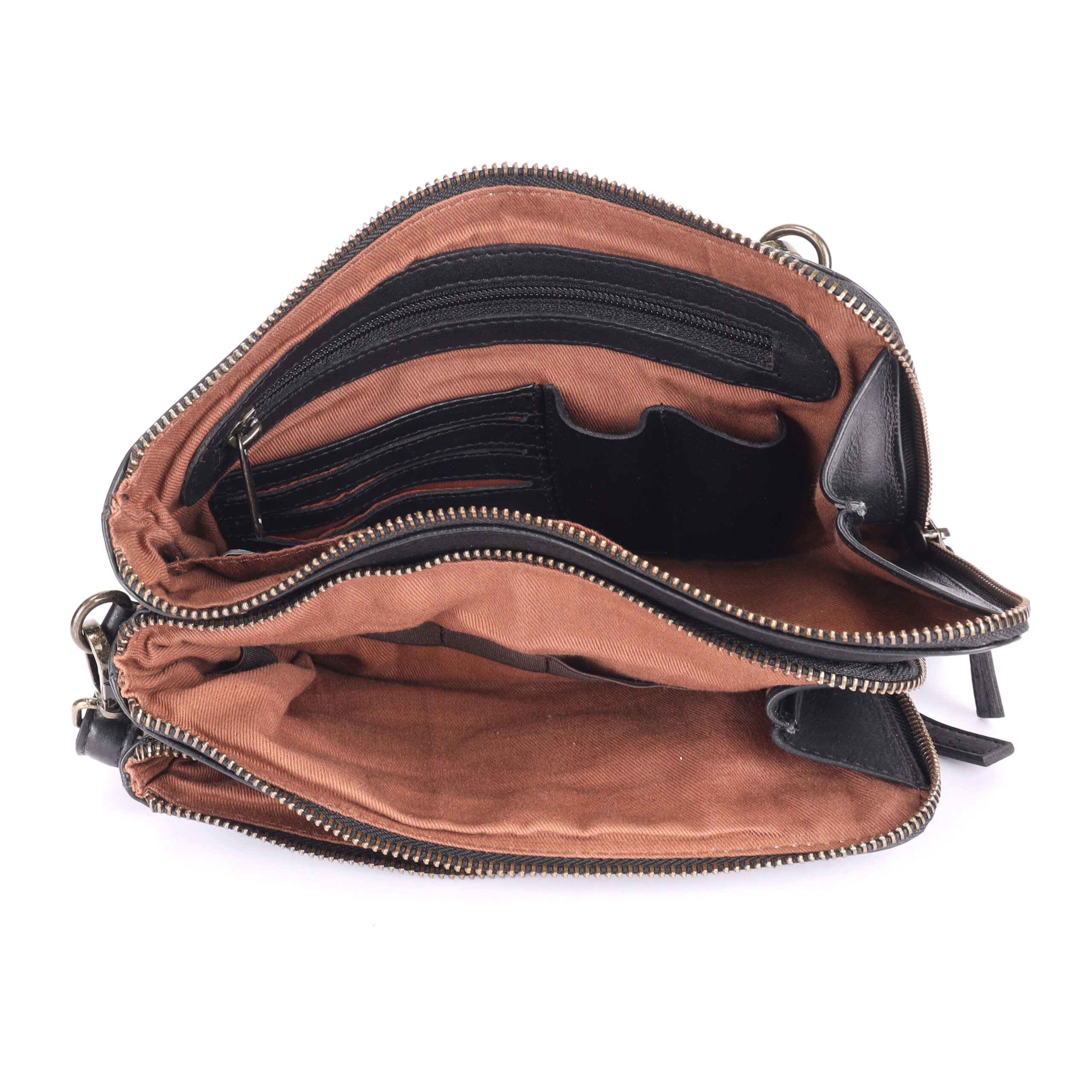 Finally, a small handbag that also has enough room for all the essentials! With three well-organized zippered compartments, nothing gets lost in this smooth leather handbag. The adjustable crossbody strap ensures comfort while wearing.