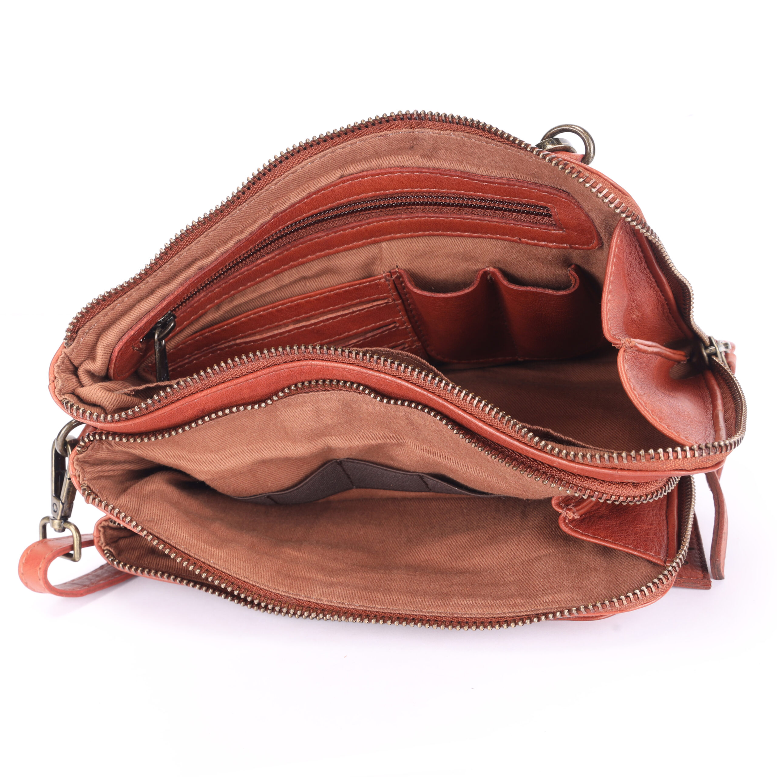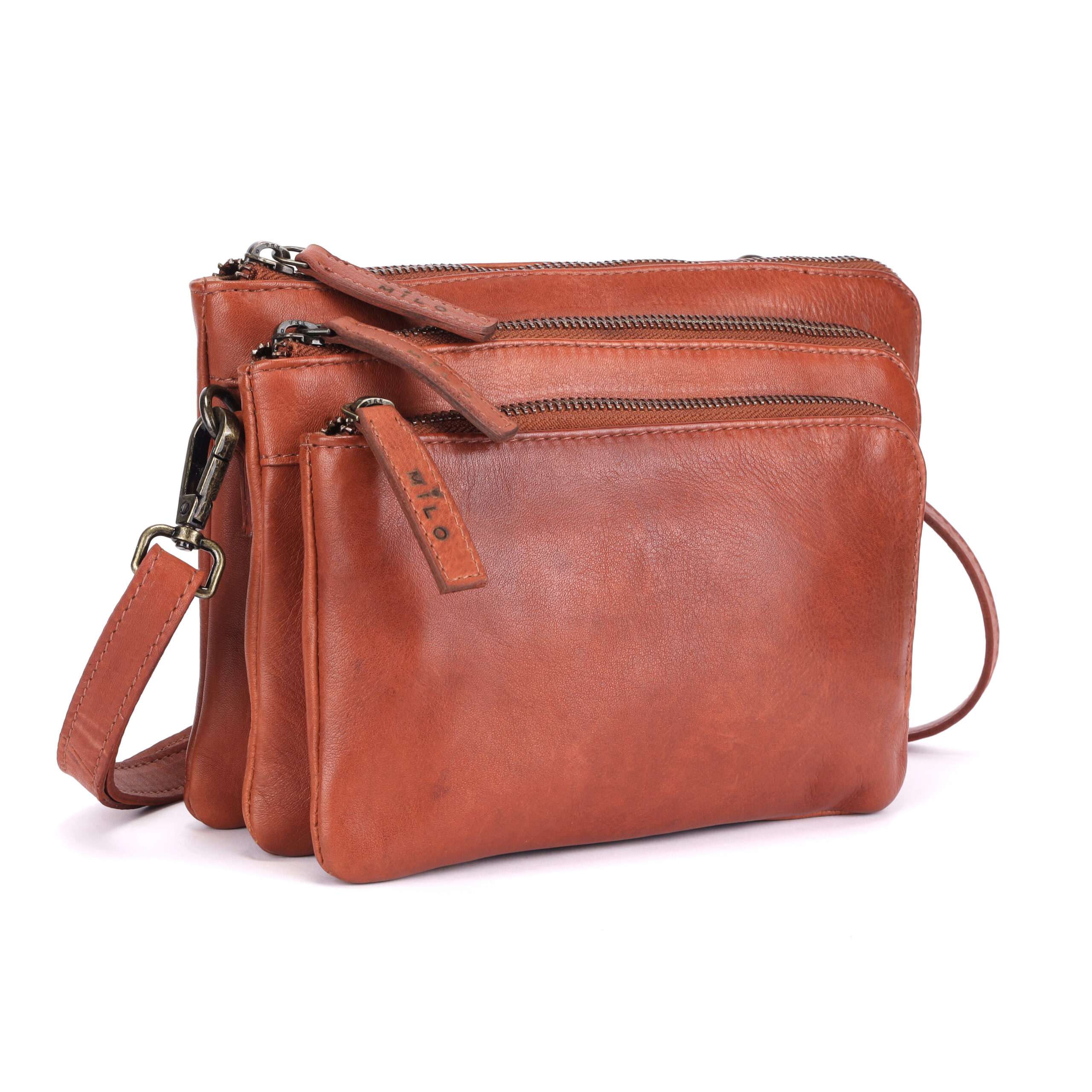 Finally, a small handbag that also has enough room for all the essentials! With three well-organized zippered compartments, nothing gets lost in this smooth leather handbag. The adjustable crossbody strap ensures comfort while wearing.