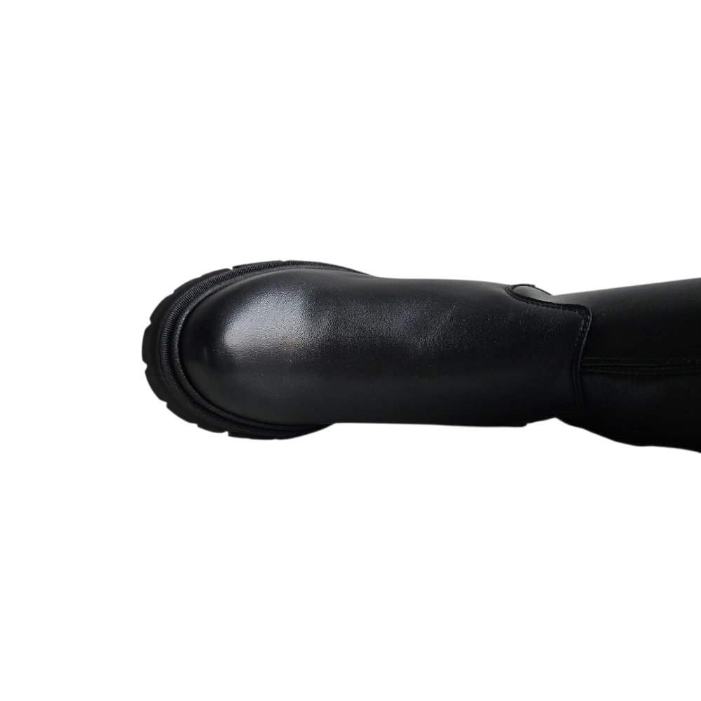 Please note that the calf width measures just shy of 13.25″ in circumference at the top of the 14″ tall shaft, and the stretch panel will allow up to 15″ in circumference.  These measurements are based on a sample size 36, and the calf circumference will increase slightly with each foot size.