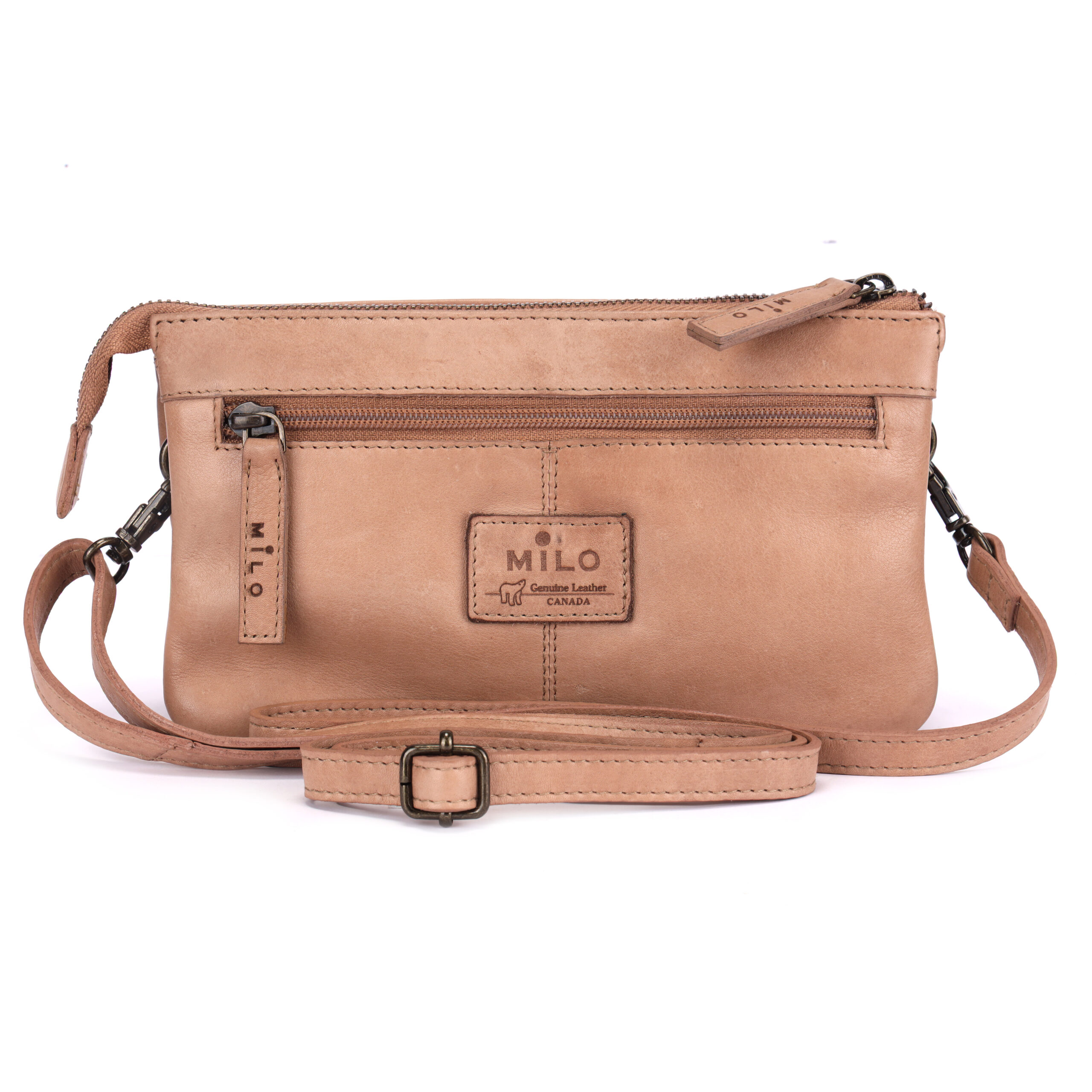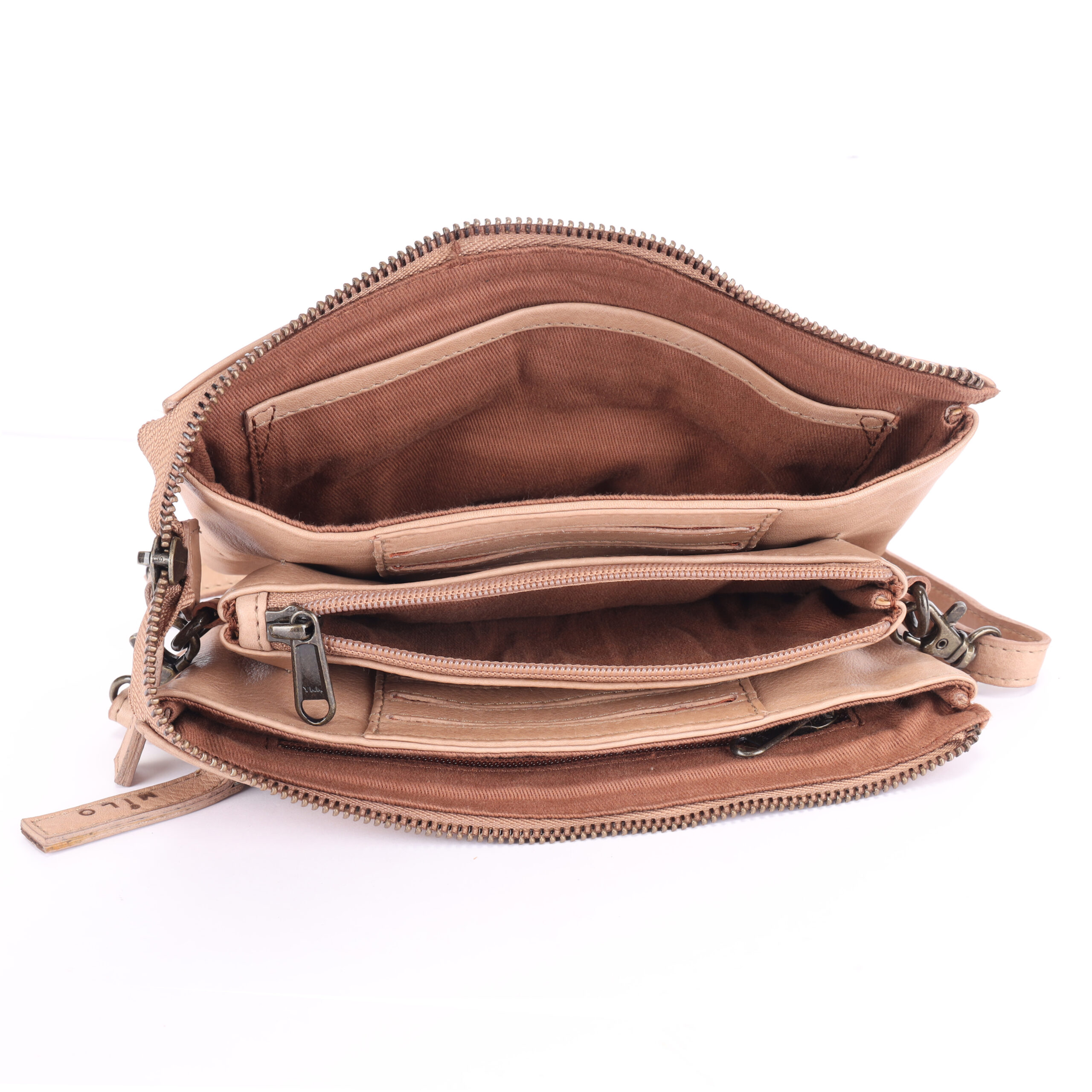 Finally, a small handbag that also has enough room for all the essentials! With three well-organized zippered compartments, nothing gets lost in this smooth leather handbag. The adjustable crossbody strap ensures comfort while wearing.
