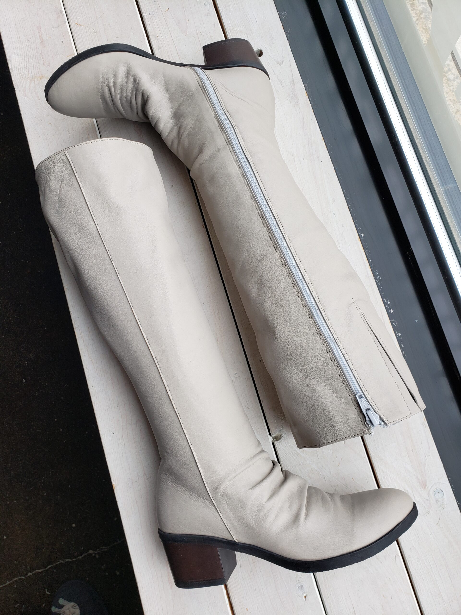 Please note that the calf width measures just shy of 14.75″ in circumference at the top of the 14.5″ tall shaft. These measurements are based on the size 35 sample, and the calf circumference will increase slightly with each foot size.
