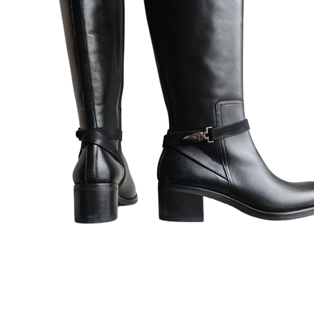 Please note that the calf width measures just shy of 14.5″ in circumference at the top of the 13.25″ tall shaft.  These measurements are based on the size 6 sample, and the calf circumference will increase slightly with each foot size