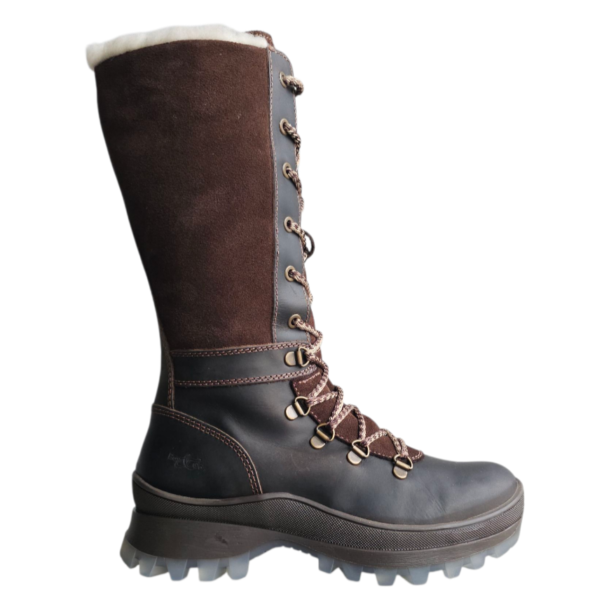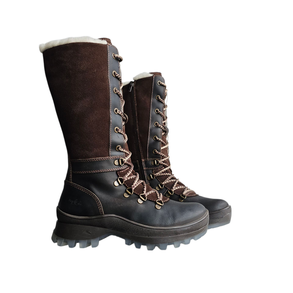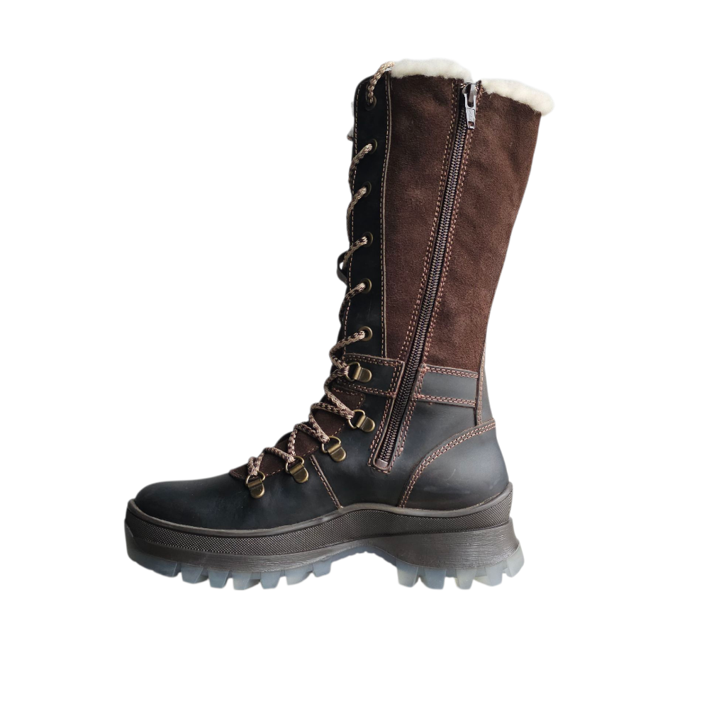 Snowy streets are no match for this waterproof leather and suede boot warmed by PrimaLoft insulation and a fluffy wool faux-shearling lining. A side zip and lace-up ties ensure easy-wear comfort, while the lugged sole provides reliable traction.