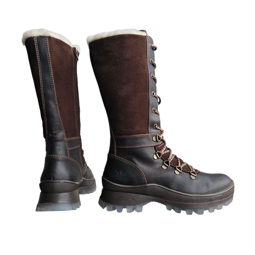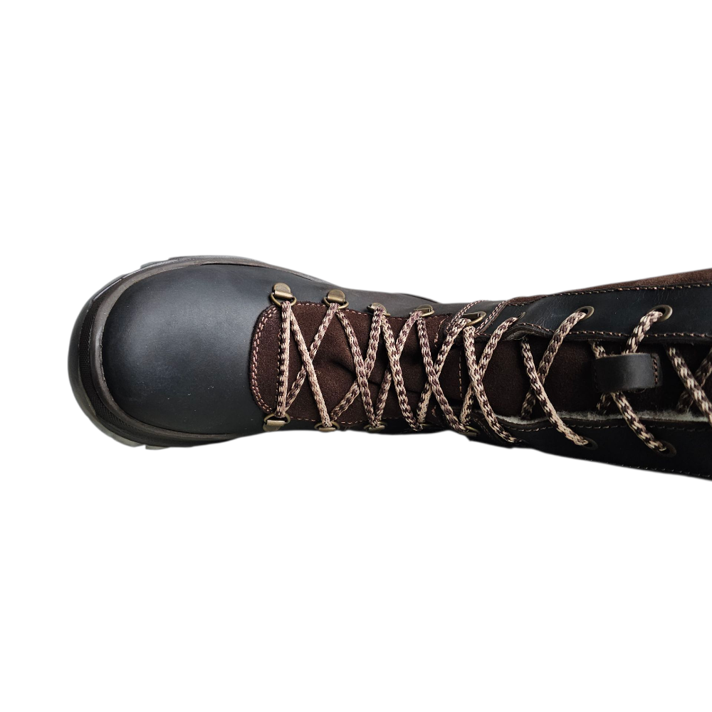 The fit in the foot? I wear my normal EURO size without socks, and the width was comfortably snug due to the thickness of the lining. If you often float between two sizes because of the width of your foot, you will want to try the larger of the two sizes. If you wear Smartwool or thick socks all the time, you might need a larger size as well. The fit in the calf? The laces are fully adjustable, allowing this boot to fit anywhere from 14-16″ in calf circumference at the top of the 10″ shaft