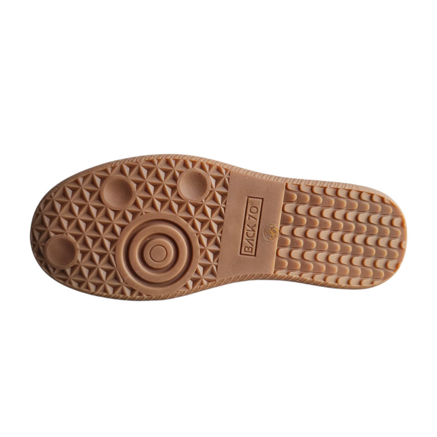 • Flexible gum rubber-inspired sole