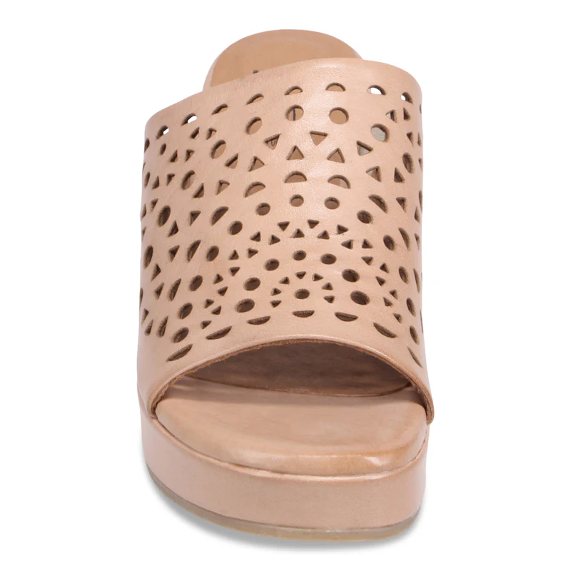 Sized in European, this buttery soft leather wedge fits true to size in length.  Due to how high the upper sits on the top of the foot, they are best suited for a slightly above-average to wider foot.  If there is anything flat or narrow about your foot, you will struggle to find the proper fit in this style, regardless of what size you choose.
