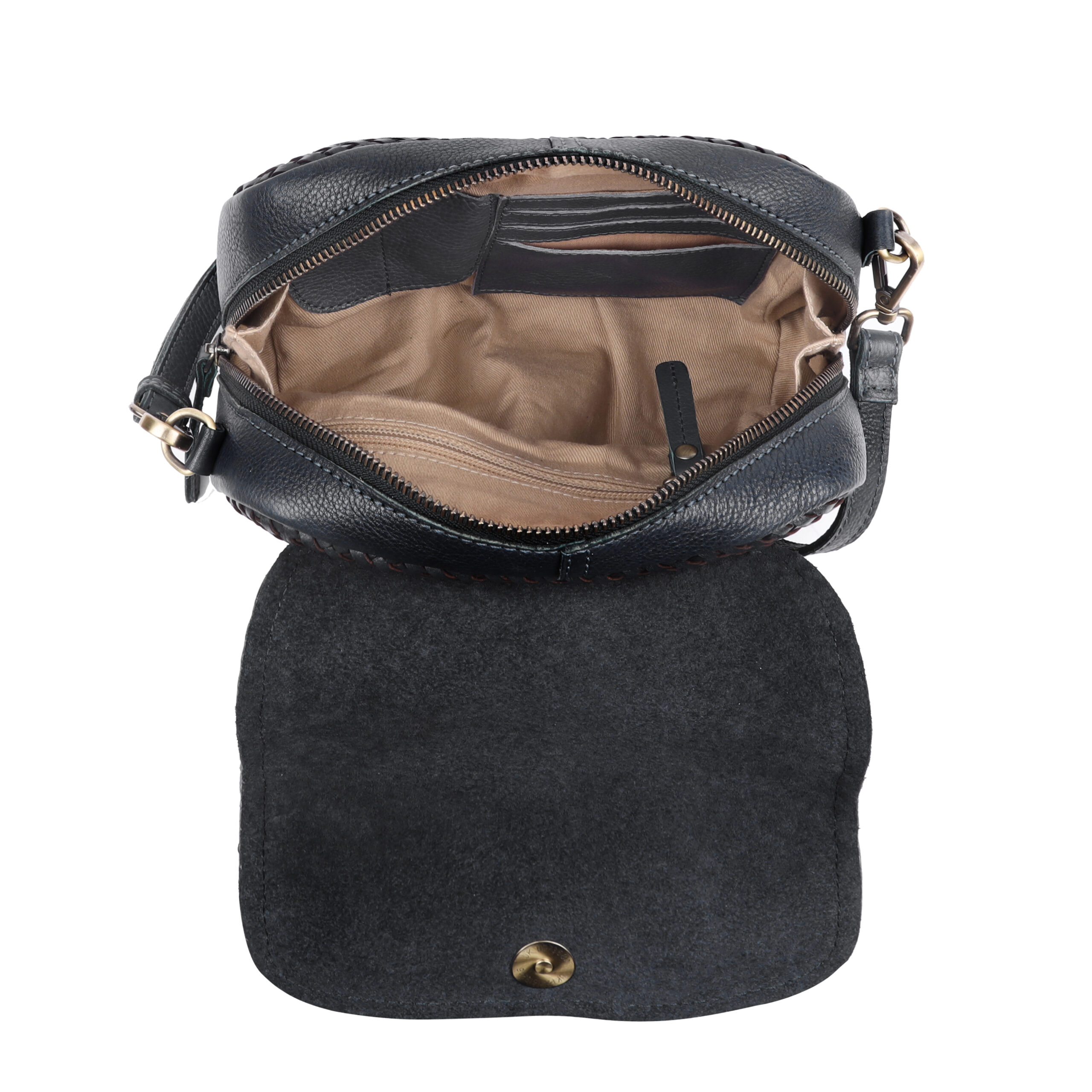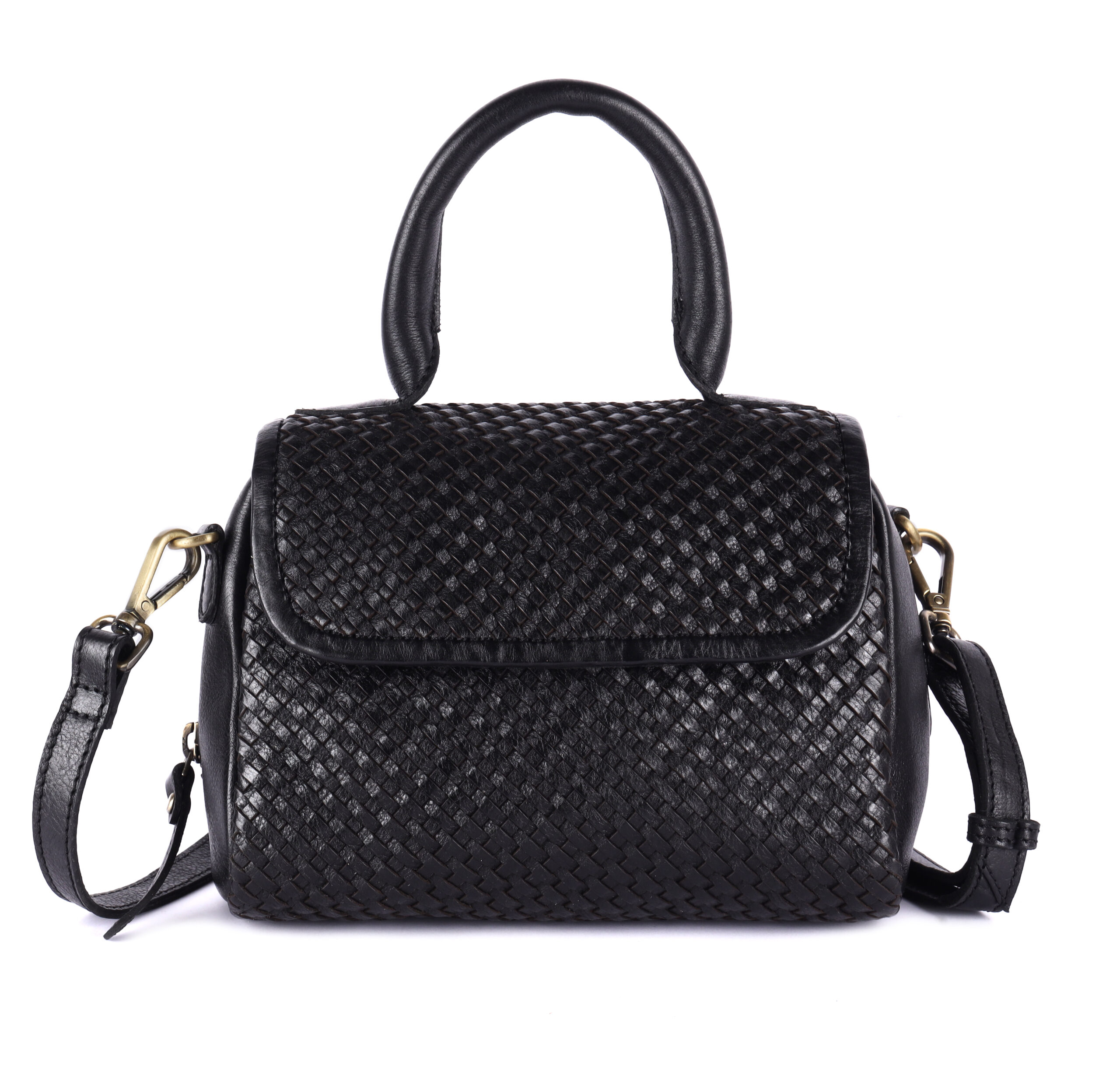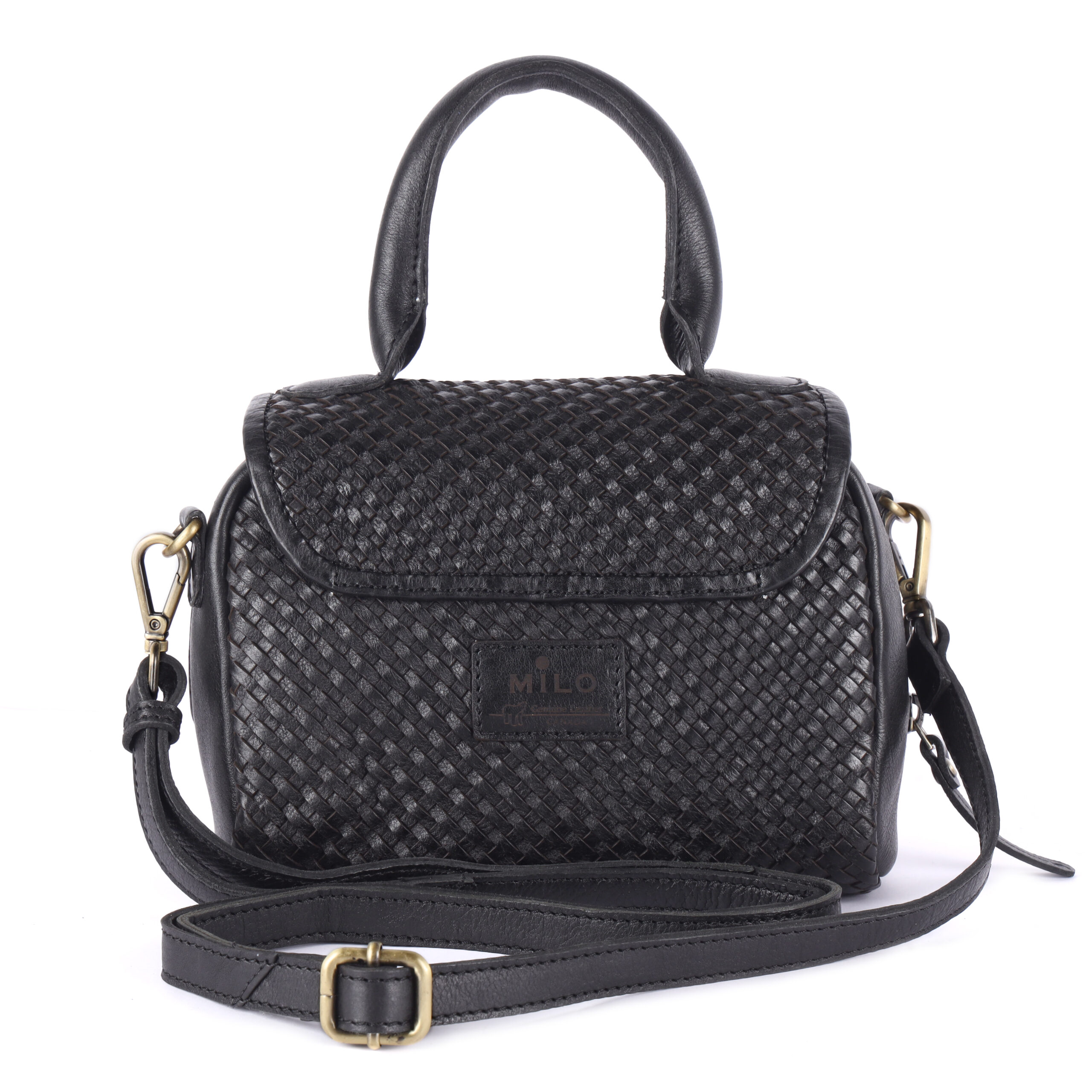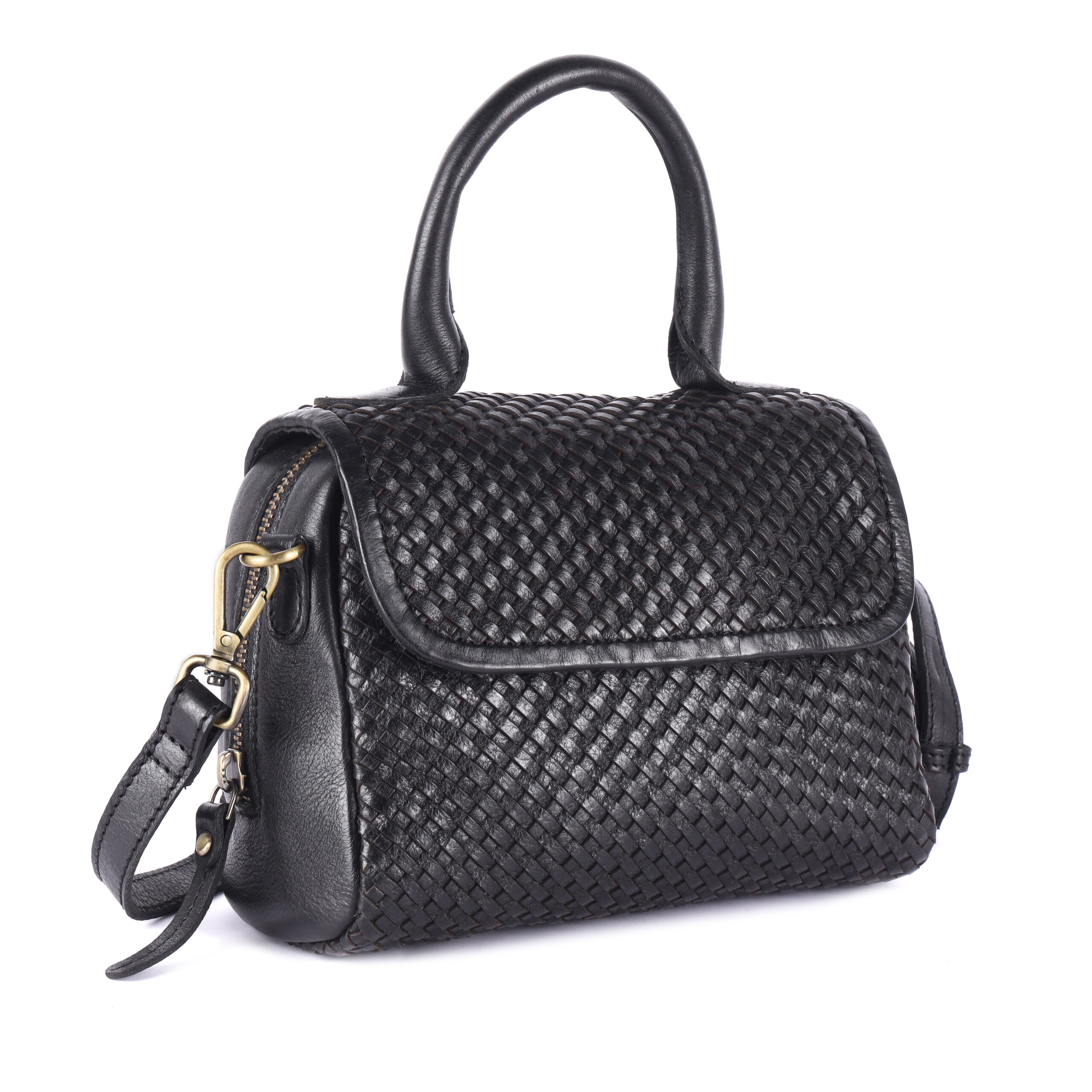 This tiny handbag features a top zippered entry compartment for easy access and an optional crossbody strap.