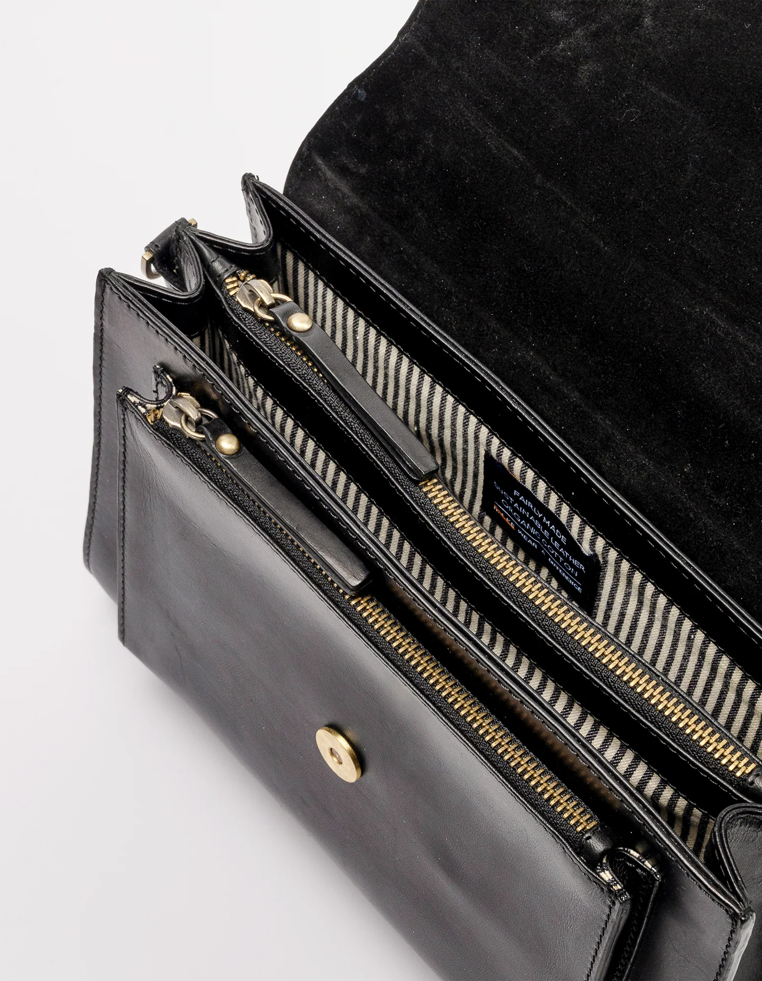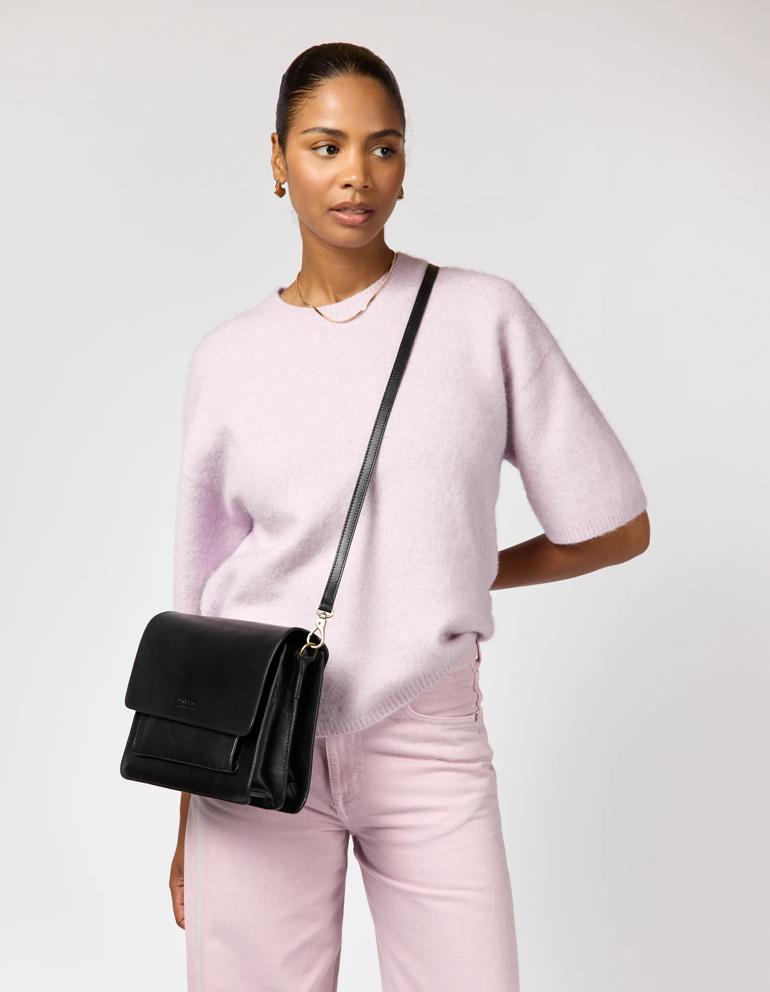 Meet Harper, the perfect go-to midi bag for any occasion. With her unique accordion design and convenient fold-over flap, Harper is sure to get the attention she deserves. Featuring two straps, one adjustable leather strap and a shorter, wider leather & webbing strap. Inside, she has 3 main compartments, as well as an additional front pocket with a zip closure for those quick-reach items. An elegant and timeless design, Harper is here for a good time and a long time.