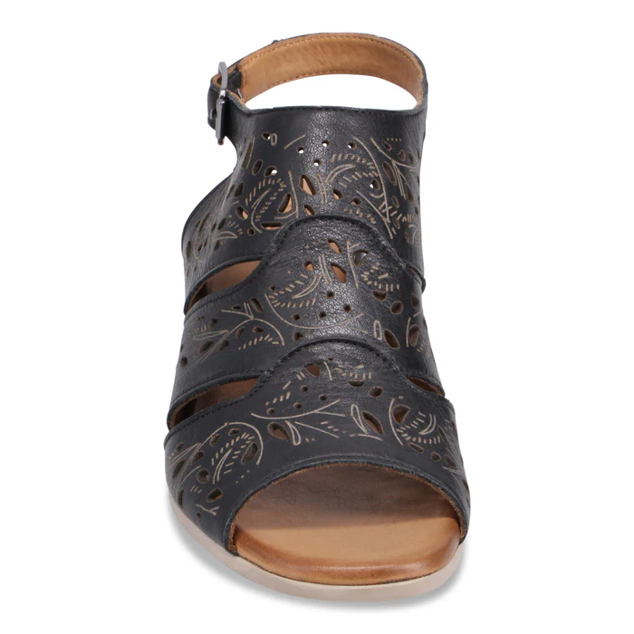 Sized in European, they fit true to size in length. The width is best suited for an above-average/fuller foot. Because the upper sits high on the top of the foot, they will not work for those with a flat or narrow foot. Simply put, if you don’t have a fuller foot, your toes will slip off the edge of the sandal, no matter what size you choose.