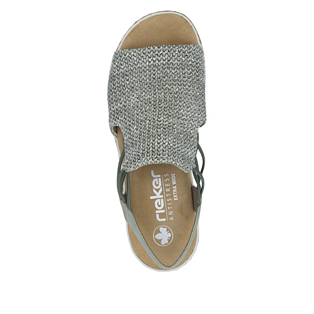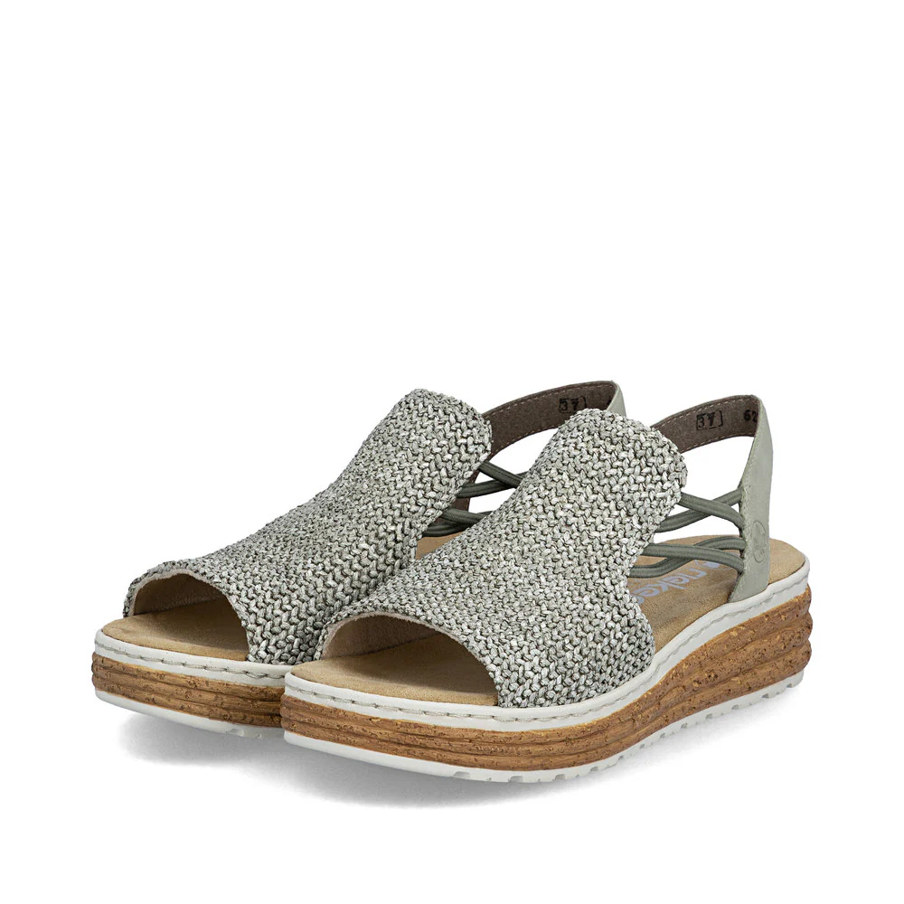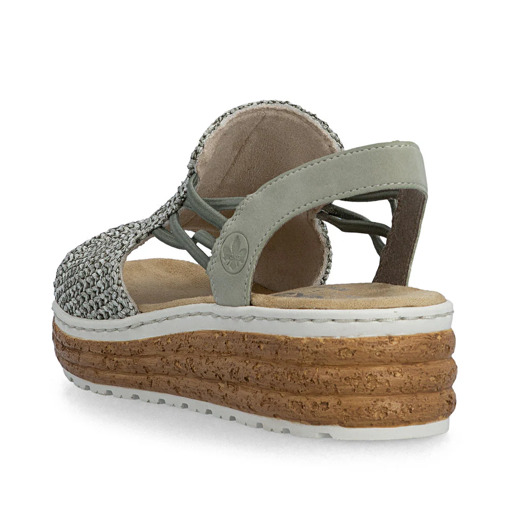 • Faux cork 1.5″ wedge heel paired with a matching 0.75″ platform