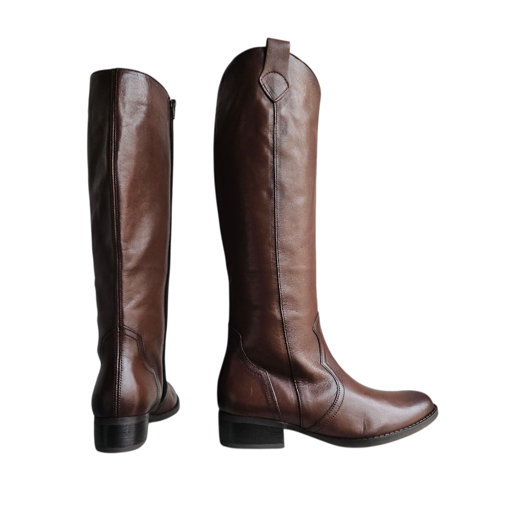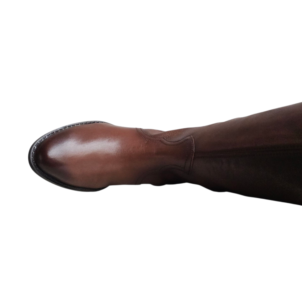 Please note that the calf width measures just shy of 15.25″ in circumference at the top of the 14.5″ tall shaft. These measurements are based on the size 6 sample, and the calf circumference will increase slightly with each foot size.