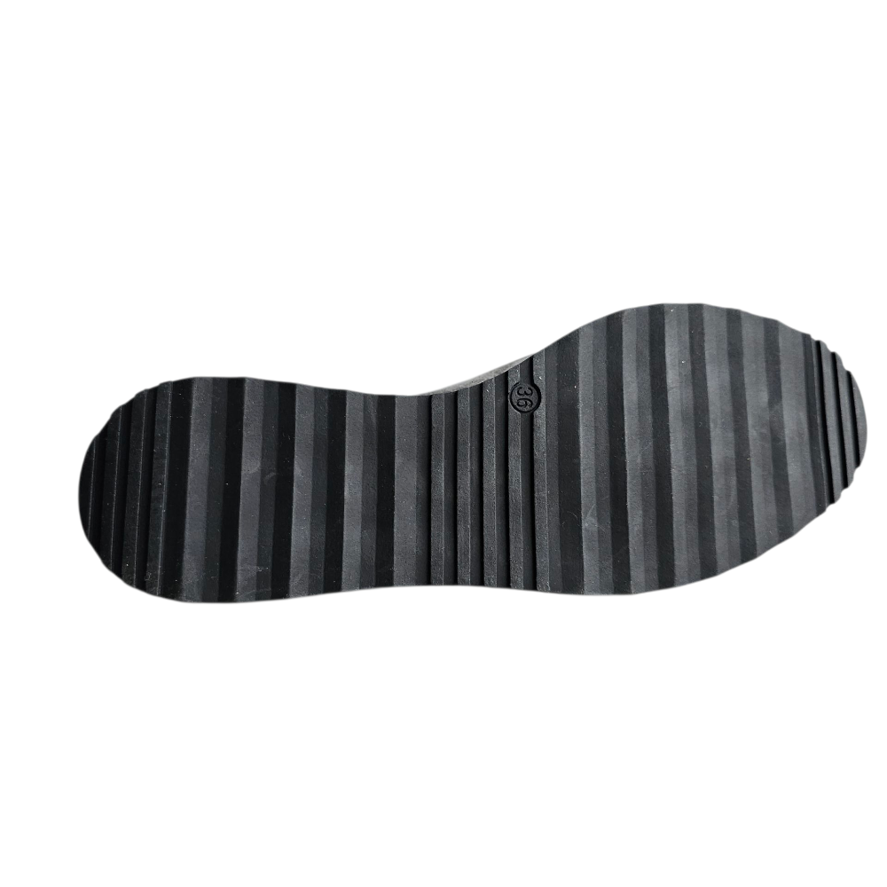 • Wedge heel with rubber textured sole