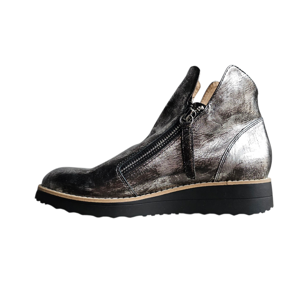 Sized in European, OHMY fits true to size in length.  The width is best suited for an average to slightly above-average foot, but due to the zipper placement, they may not be comfortable on a truly wider foot, regardless of the chosen size.  There is no option for adjustment in the instep.