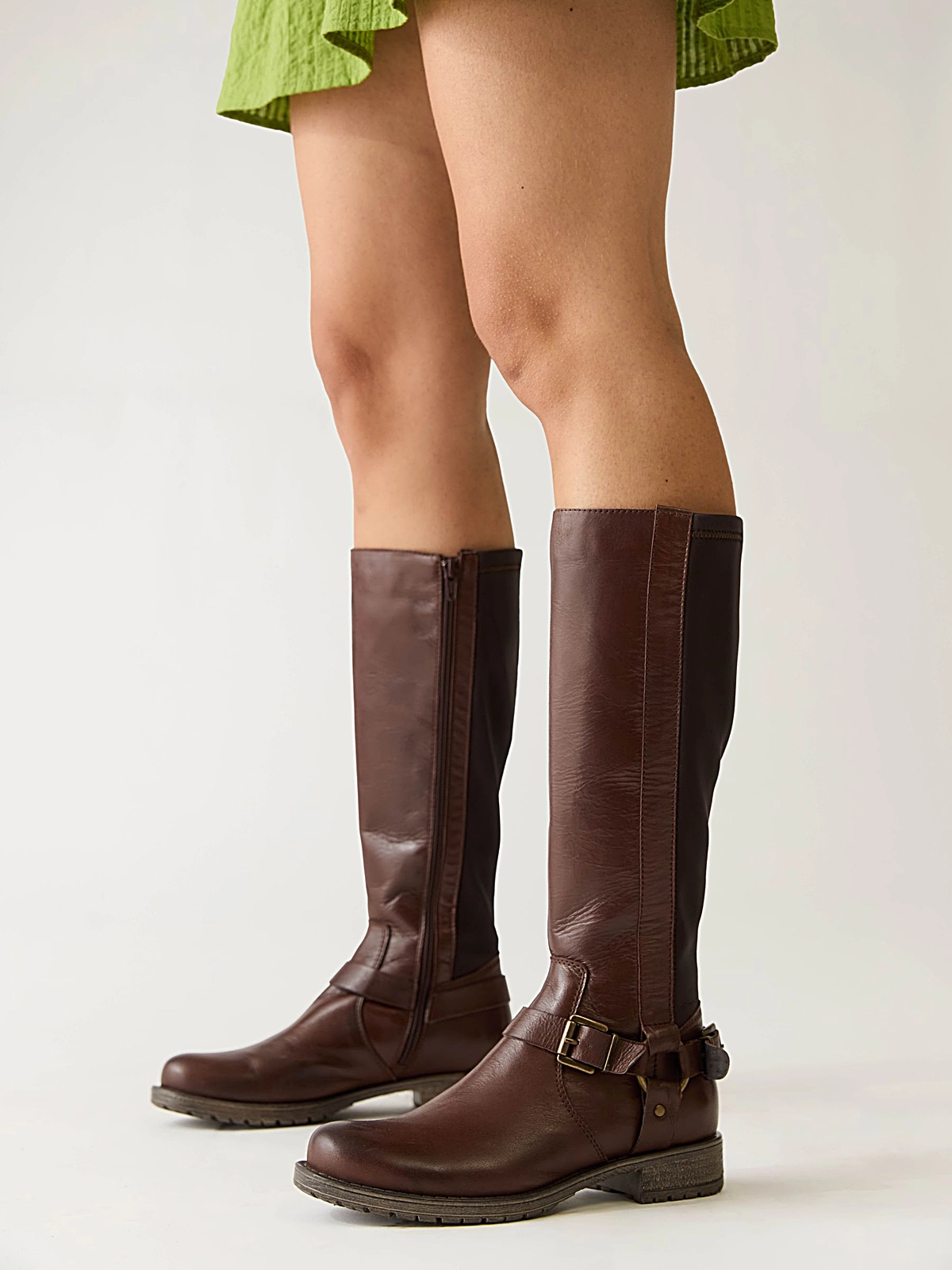 Please note that the calf width measures just shy of 15.5″ in circumference at the top of the 14″ tall shaft, and the stretch panel will allow up to 16.75″ in circumference. These measurements are based on a sample size 36, and the calf circumference will increase slightly with each foot size.
