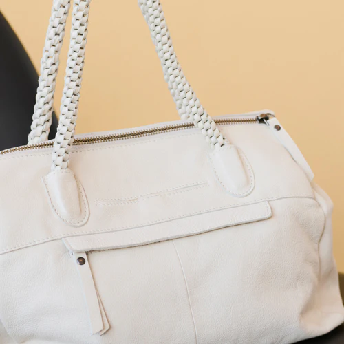 From brunch to a night out + everything in between, our super-soft Roam bag features chic + unique woven, rolled-top handles, 2 exterior pockets, a detachable shoulder strap + a fully organized interior.