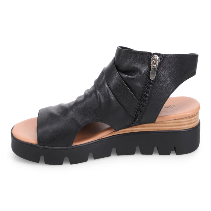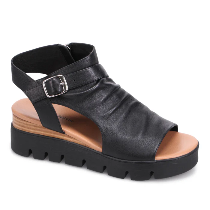 Sized in European, this wedge fits true to size in length. . They are best suited for an average to slightly above-average width foot, though they are a touch generous in the instep. The buckle at the ankle does not allow for more or less in the instep; it is more decorative than anything else.