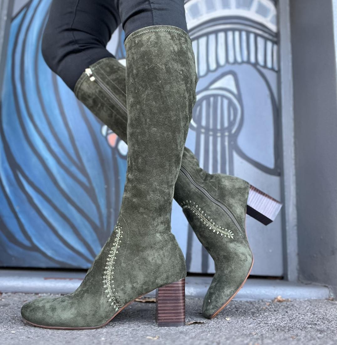 Sized in European, SARI fits true to EURO size for length.  The width is best suited for an average to slightly above average foot.   The styling of the boot is quite tidy around the ankle and leg.  The upper of the shaft does have a bit of stretch, but the boot itself is intended to be fitted to the leg.  FYI, this is not an all-weather boot, no amount of spray is going to make it water-resistant due to that pretty stitching on the upper:)