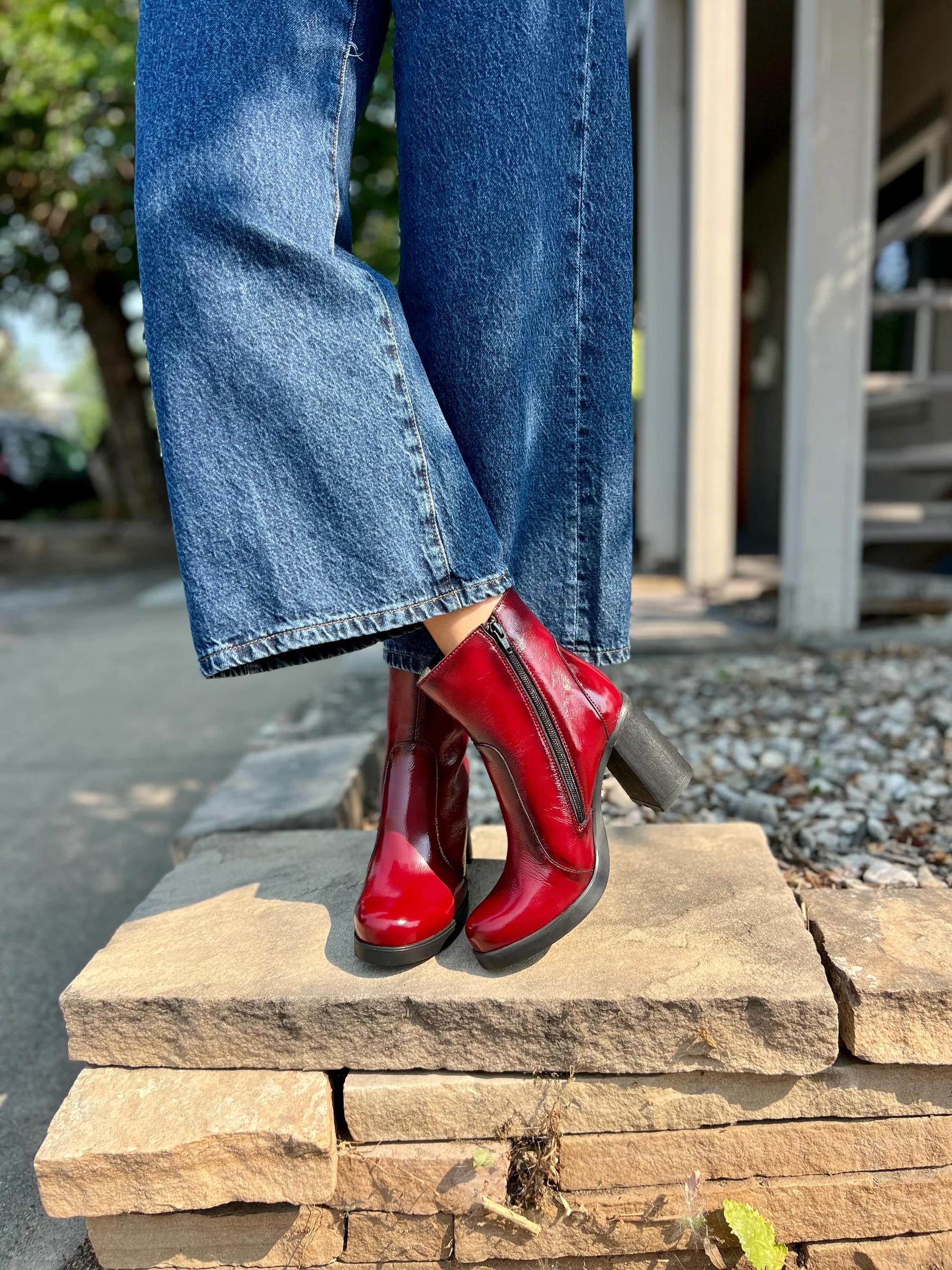 Please note that due to the gloss of the leather, the shade of red will vary in each form of lighting.
