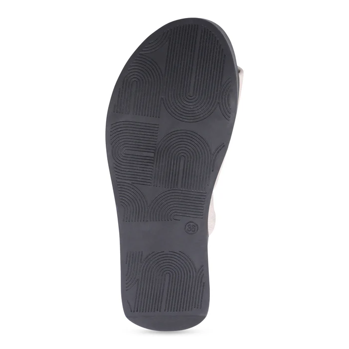 Sized in European, this style fits true to size in length. It is best suited for an average to slightly above-average width foot, and there is no option to adjust fit in the width or instep. If there is anything flat or shallow about your foot, this sandal will not work for you, regardless of what size you choose.