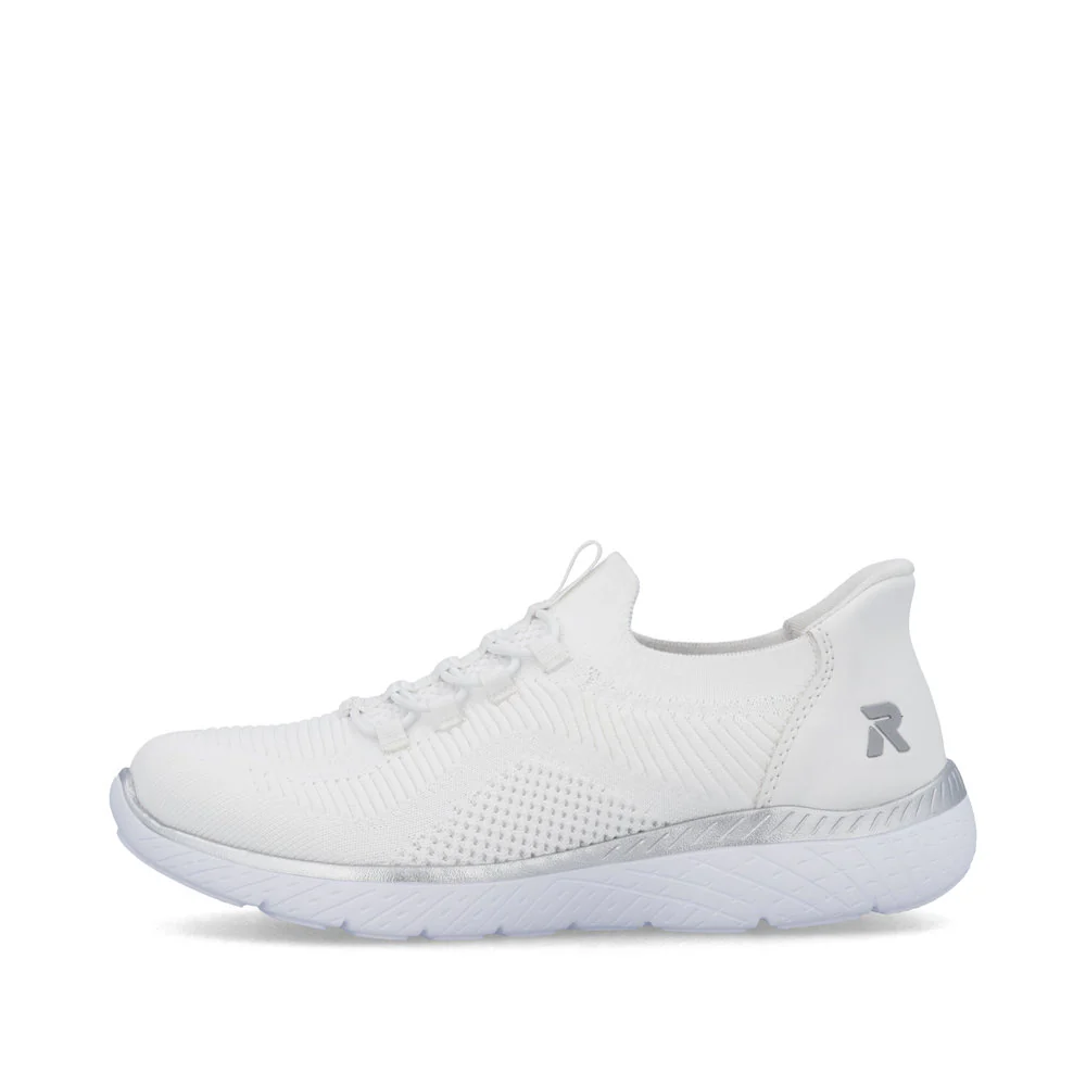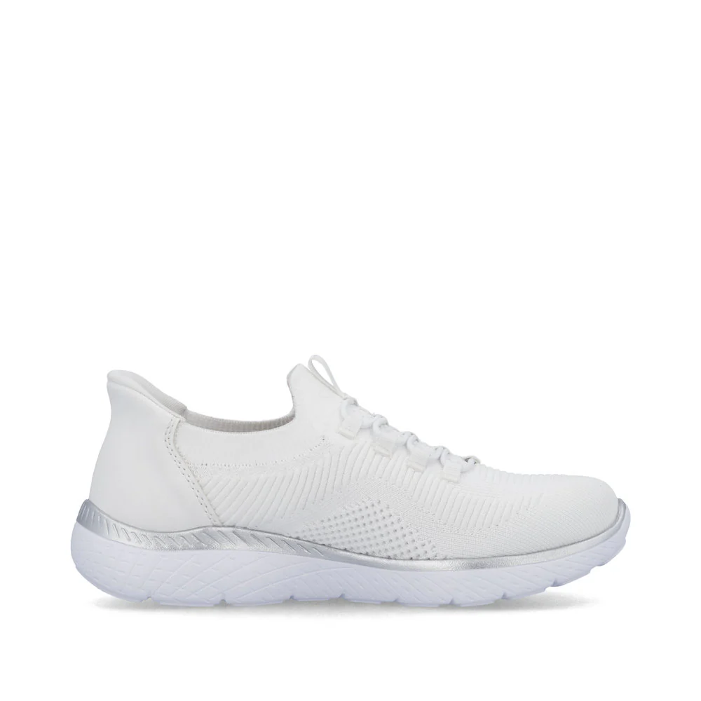 Sized in European, this lightweight style fits true to size for length.  The textile upper does have a touch of stretch to it, making the width best suited for an average to slightly above average foot.  The bungee lacing is just for looks, and the tongue is secured; don’t count on much adjustment along the instep/
