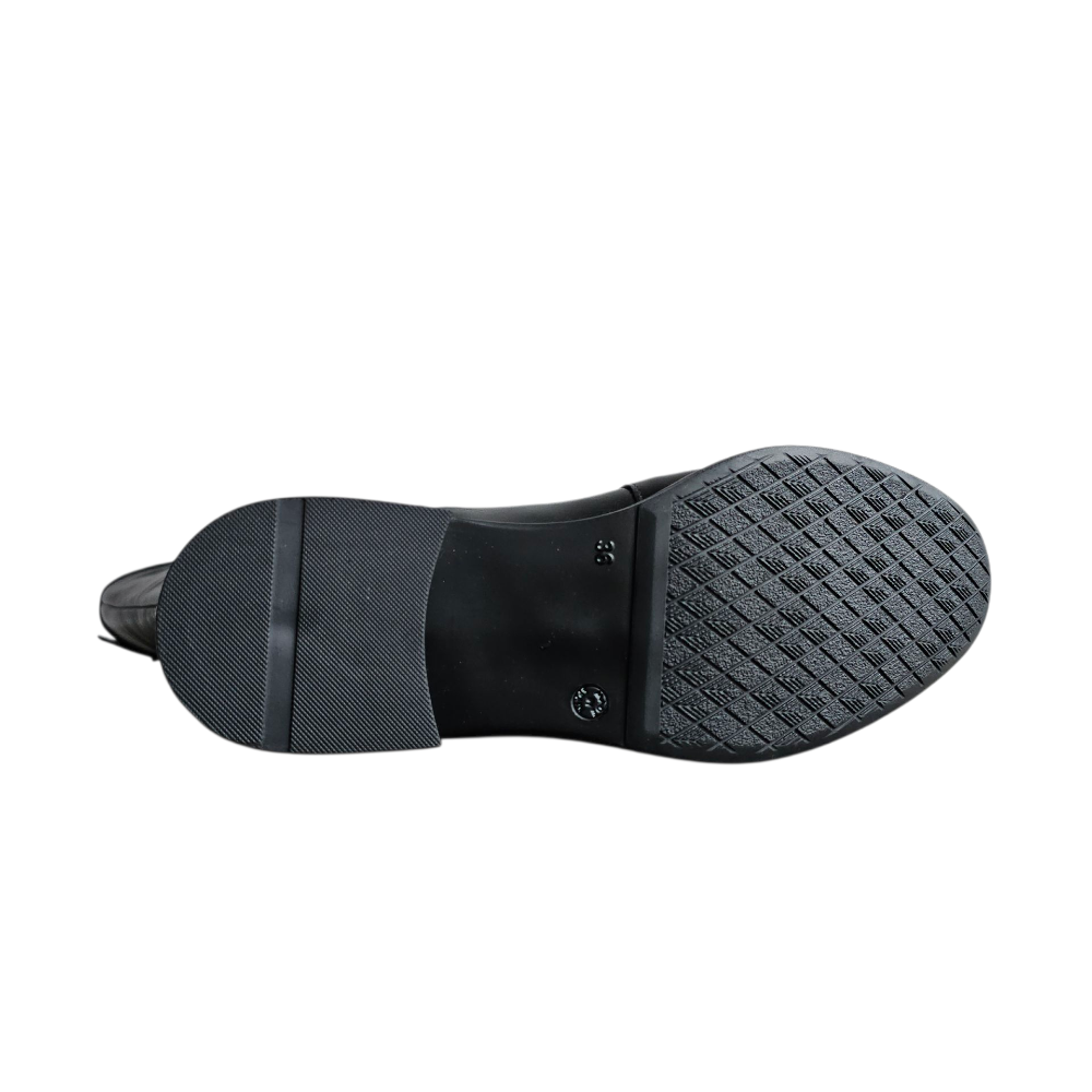 Please note that the calf width measures just shy of 15″ in circumference at the top of the 14.5″ tall shaft. These measurements are based on the size 6 sample, and the calf circumference will increase slightly with each foot size