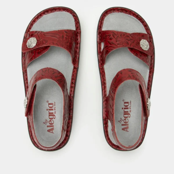 Casual meets regal. The Viena is the perfect slide sandal to glamorize any summer outfit. Sumptuous patterns and complementary metallic hardware create an intricate look. An adjustable strap and a crisscross design over the vamp are paired with our slimmer Mini outsole, designed to mimic a natural rocking motion for improved pressure distribution across the bottom of the foot. The patented footbed is ergonomically designed to conform the natural contour of the foot, working to relieve legs, hip and back from long standing hours.