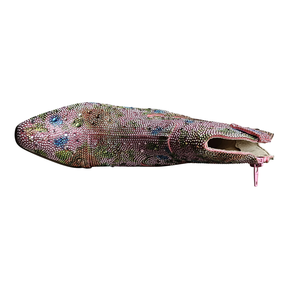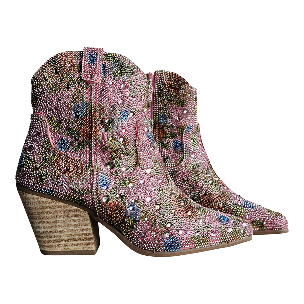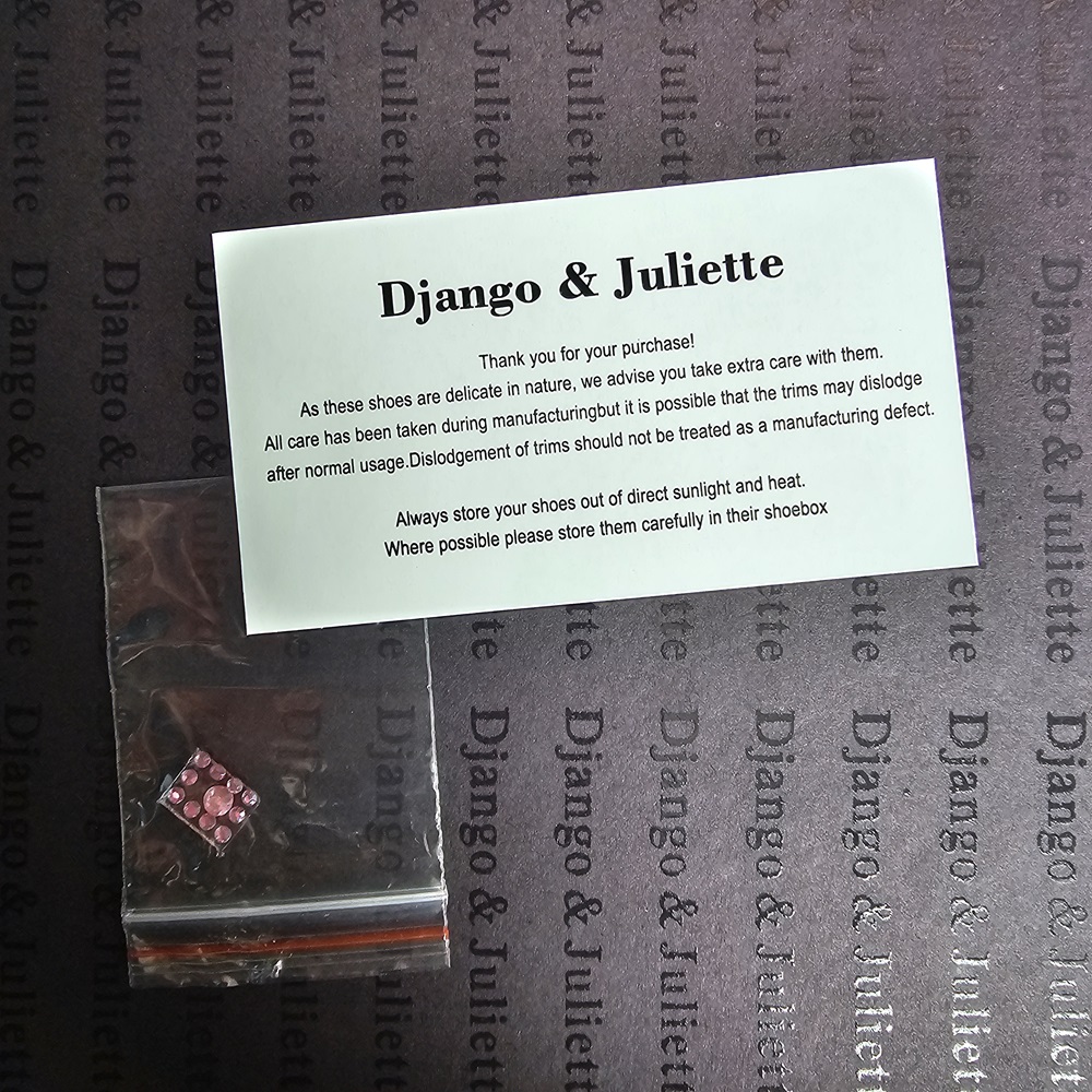 We’ve added a photo of the disclaimer from the inside of the box lid.  These booties are delicate; everything made with rhinestones can’t be helped.  So follow the disclaimer, and show your boots love.