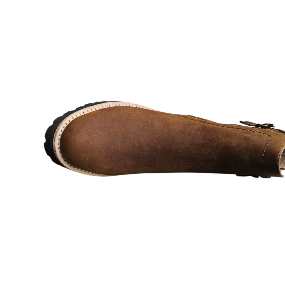 We do need to note that the leather used on this boot is intentionally distressed and is intended to show additional burnishing and scuffs with wear.